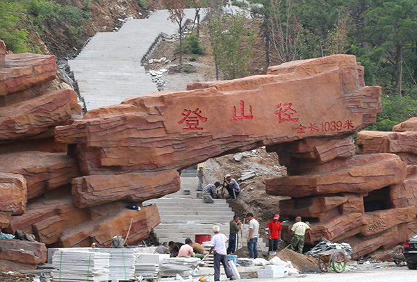 通往觀景臺(tái)的是一條長(zhǎng)達(dá)1039米的登山徑,登山徑自下而上觀望,給人以高聳入云之感,登山徑的主體現(xiàn)已完工,但在現(xiàn)場(chǎng)依然還能看到一群手持精密儀器的測(cè)量人員和工程技術(shù)人員一直在這里認(rèn)真工作。他們是為了登山徑兩側(cè)的排水工程、電氣工程及綠化裝飾工程做著最后的測(cè)量,以確保工程質(zhì)量。