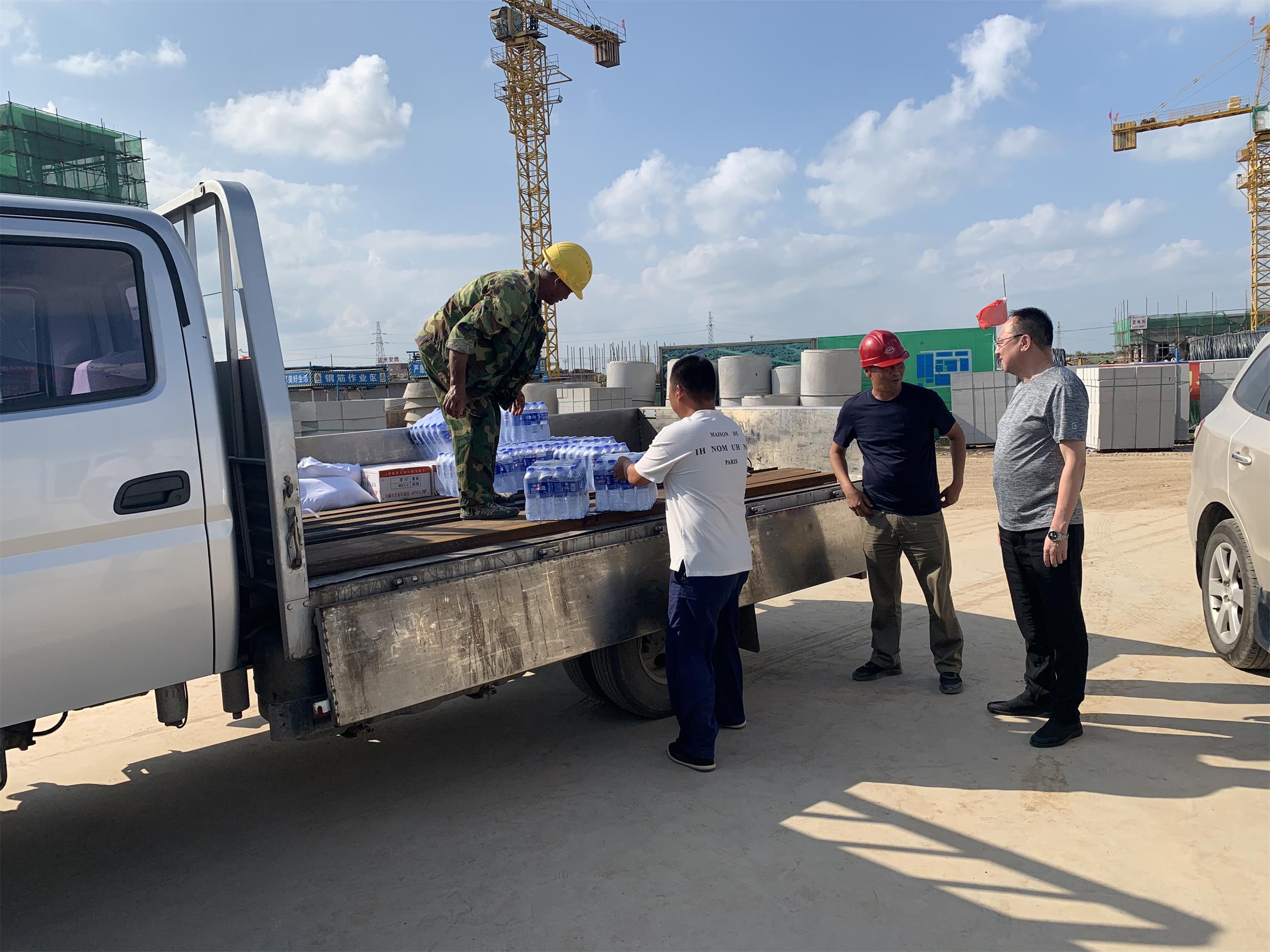 8月14日,華地集團(tuán)工會(huì)主席高虹長(zhǎng),行政人事部長(zhǎng)王璇,一行5人,走訪了女兒河濱河路、污水廠、配水廠、大有文張線,管廊等在建項(xiàng)目,為三伏天奮戰(zhàn)在一線的員工們,送去了風(fēng)扇、藿香正氣水、風(fēng)油精、礦泉水、白糖等防暑降溫物品,工會(huì)主席高虹長(zhǎng)現(xiàn)場(chǎng)詳細(xì)了解了員工們的生產(chǎn)生活,飲食衛(wèi)生和勞動(dòng)保護(hù)等各項(xiàng)情況,并要求各項(xiàng)目管理人員,做好暑天安全防護(hù),加強(qiáng)防暑降溫意識(shí)和措施,切實(shí)的為廣大員工創(chuàng)造良好的工作環(huán)境和生活環(huán)境。