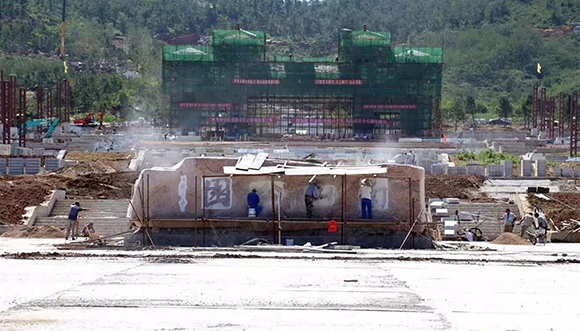 主山門(mén)廣場(chǎng)內(nèi)道路全長(zhǎng)653米,寬12米,結(jié)構(gòu)60公分,總面積7800平米。