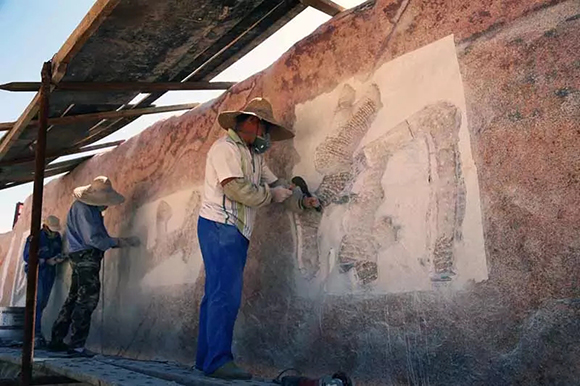 在南山公園主山門(mén)廣場(chǎng)內(nèi)一塊巨石異常顯眼,這是該廣場(chǎng)一塊重要的景觀置石。今天上午,記者見(jiàn)到工人們正在石體上打磨刻字,“南山公園”四個(gè)大字已經(jīng)清晰可見(jiàn)。